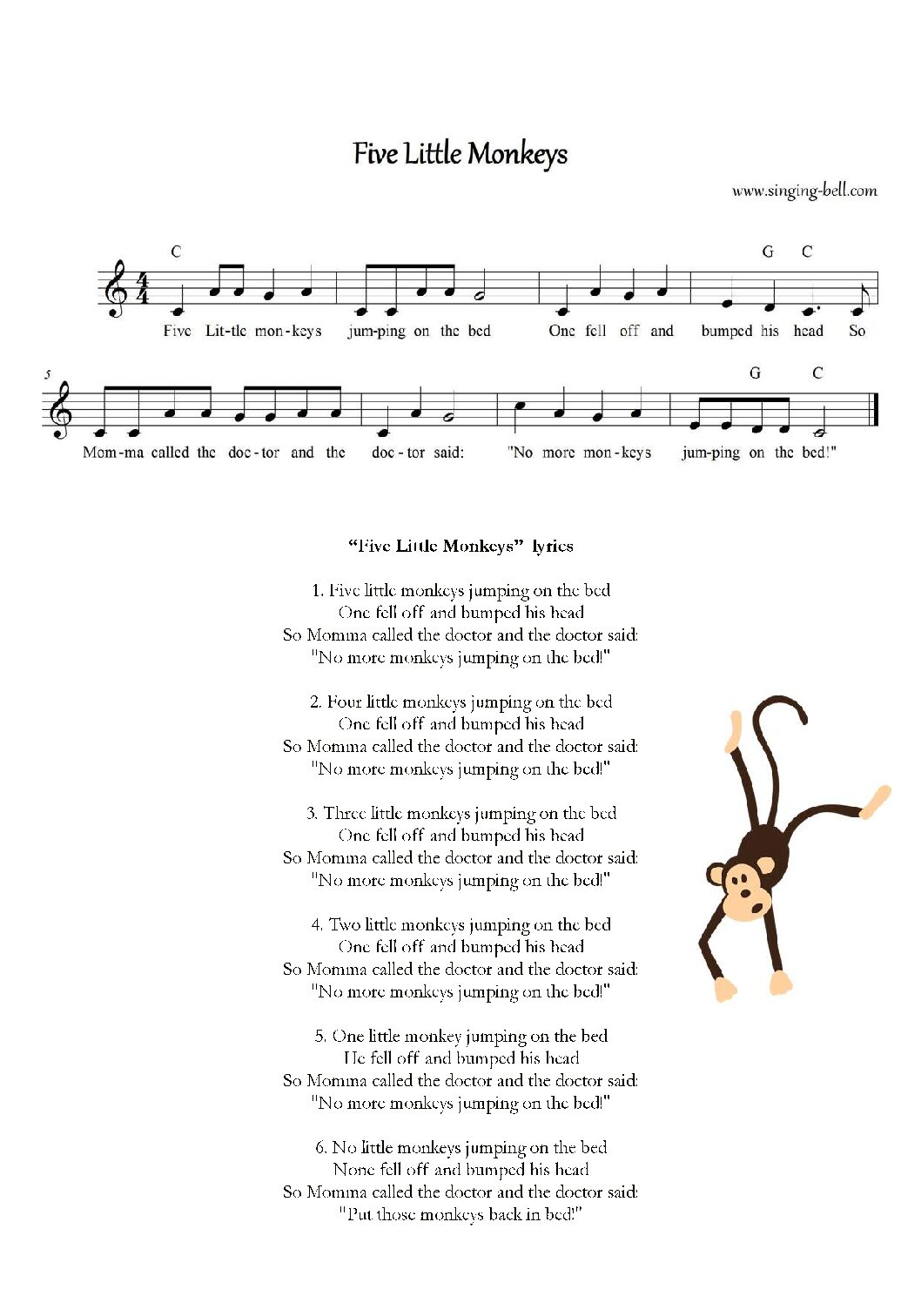Five Little Monkeys Free Sheet Music PDF to download and print out